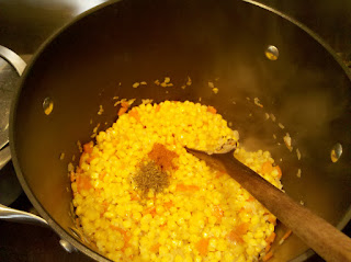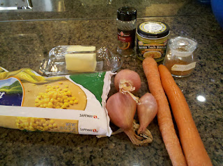 Anyway, when the carrots and shallots look nice and soft, add the corn,